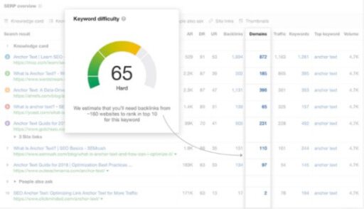 Ahrefs Anahtar Kelime Zorluk Ölçeği : Anahtar kelime zorluğunu 0’dan 100’e kadar belirlenen bir skalada size sunar. Aynı zamanda bu araç sizlere çeşitli kelimelerdeki fırsatları da bildirir.