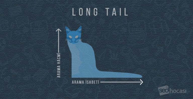 SEO açısından son dönemlerde stratejik anlamda önem verdiğimiz Long tail keywords yani uzun kuyruklu anahtar kelimeler ismi şekildeki grafiğin kuyruklu bir hayvana benzetilmesi ile ortaya çıkmıştır. Kedi, köpek, timsah ne isterseniz olur, kediyi seçtik biz bu seferlik. Grafiğin taban kısmı kelimelerin uzunluğunu dikey ekseni ise arama hacmini temsil eder. Lisedeki grafik bilgilerimize dönersek ( halen lisede isek sıkıntı yok çok güzel yıllardır keyfini çıkarın) yukarı çıktıkça aranma hacmi yükselir sağa doğru gittikçe ise de ilgili kelime dallanır budaklanır.