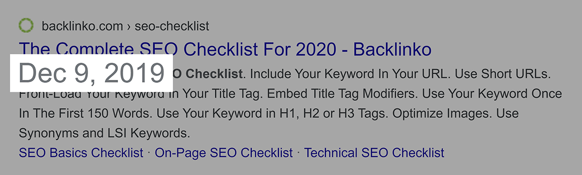30. İçerik Yeniliği: Google Kafein güncellemesi, özellikle zamana duyarlı aramalar için yakın zamanda yayınlanan veya güncellenen içeriği tercih eder. Bu faktörün önemini vurgulayan Google, belirli sayfalar için bir sayfanın son güncelleme tarihini gösterir: