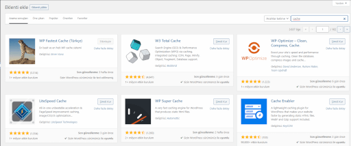 Günümüzde en yaygın kullanılan WordPress cache eklentileri: WP Rocket, Litespeed Cache, WP Fastest Cache, W3 Total Cache, Autoptimize vb